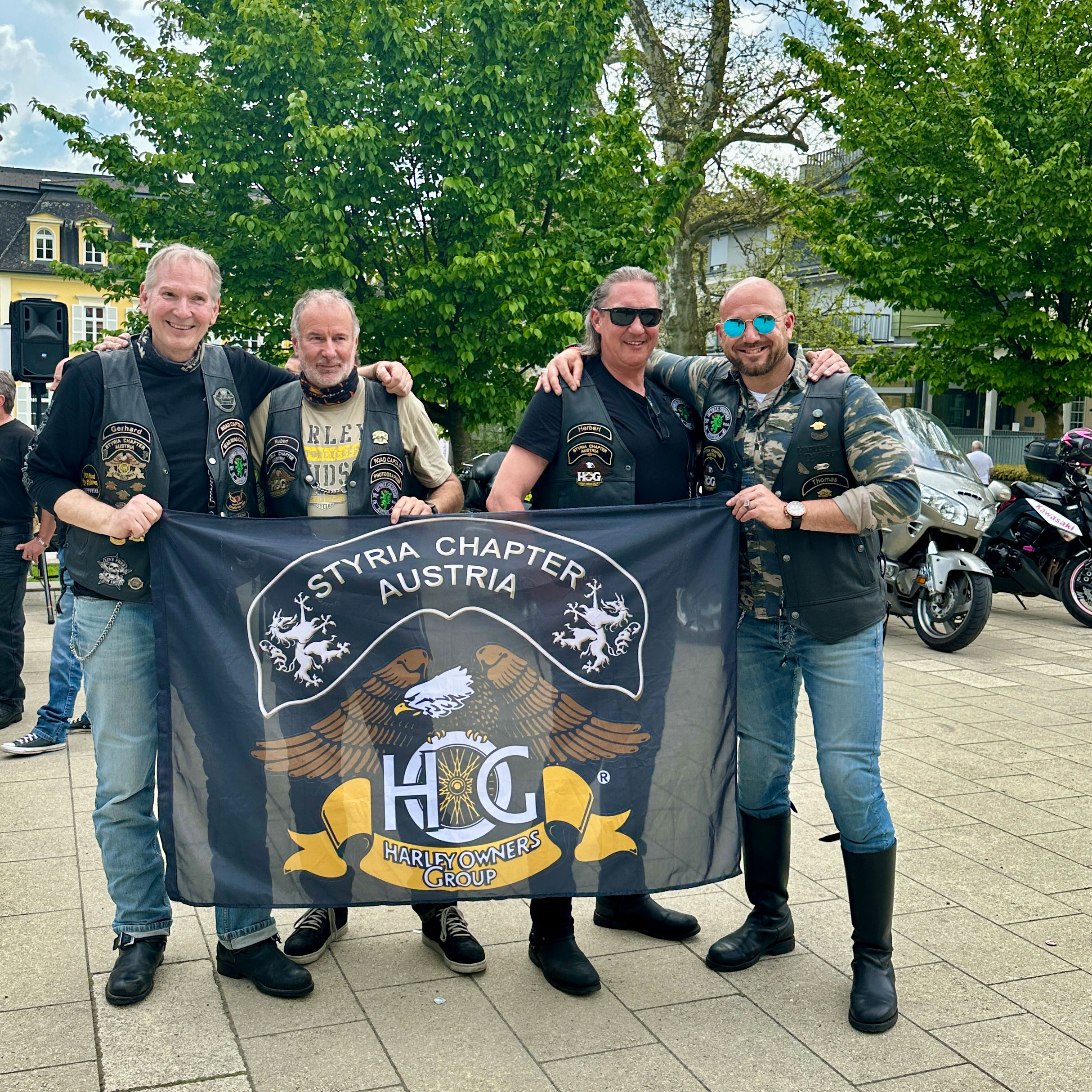 Und dann war es soweit. Alle Biker*innen starteten ihre Motoren. Die Motorengeräusche sowie die große Anzahl an Motorrädern sorgten für Gänsehaut. Mit polizeilicher Begleitung startete die Charity Ausfahrt durch die Steiermark. Die Route führte von Graz über Semriach bist zum Stubenbergsee. Bei perfektem Wetter genossen die Teilnehmer die Mittagspause am See. Gestärkt und mit Stolz führte die Route durch die Steirische Toskana nach Riegersburg bis zum Hauptplatz in Bad Gleichenberg. Unter freudiger Erwartung aller Anwesenden kamen die heißen Öfen schließlich an.
