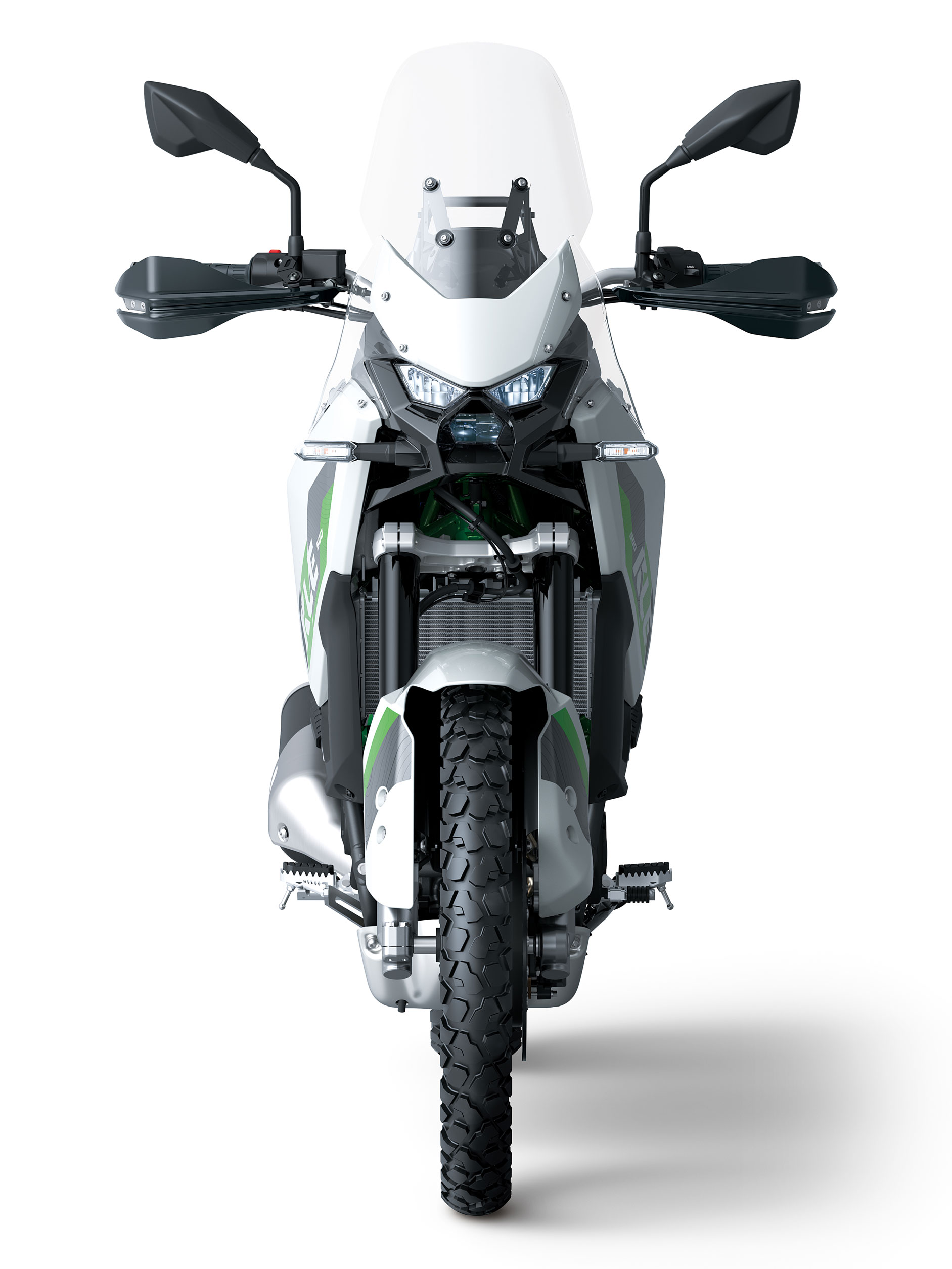 KLE500 SE, zusätzlich mit TFT-Farbdisplay, LED-Blinkern, Handprotektoren, höherem Windschild und Motorschutz.