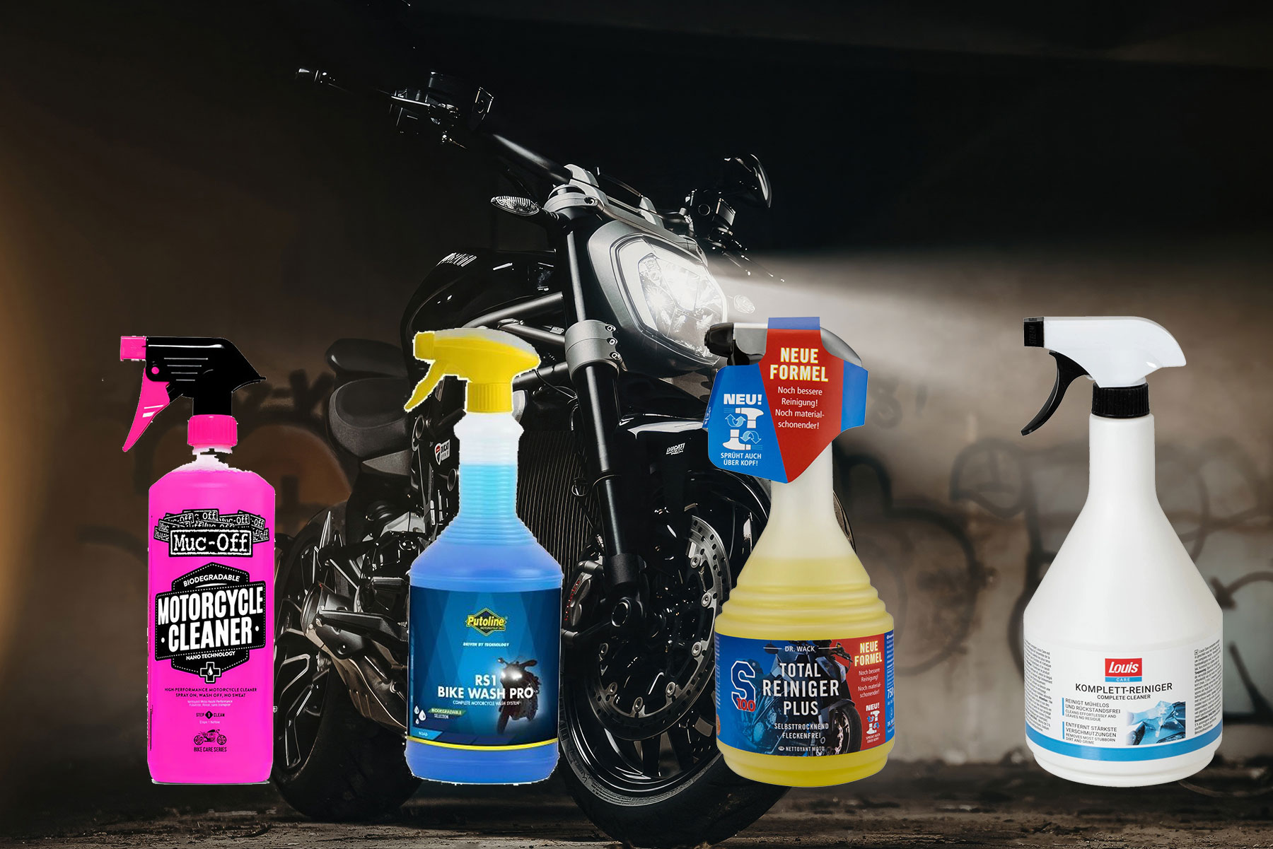 Die richtige Pflege vom Bike gehört zum Motorradfahren einfach dazu. So bleibt das Bike nicht nur voller Glanz sondern verlängert ebenso seine Lebensdauer. Auf dem Markt gibt es eine schier unendliche Auswahl an Produkten. Für diesen Test haben wir uns vier Komplettreiniger genauer angesehen.
