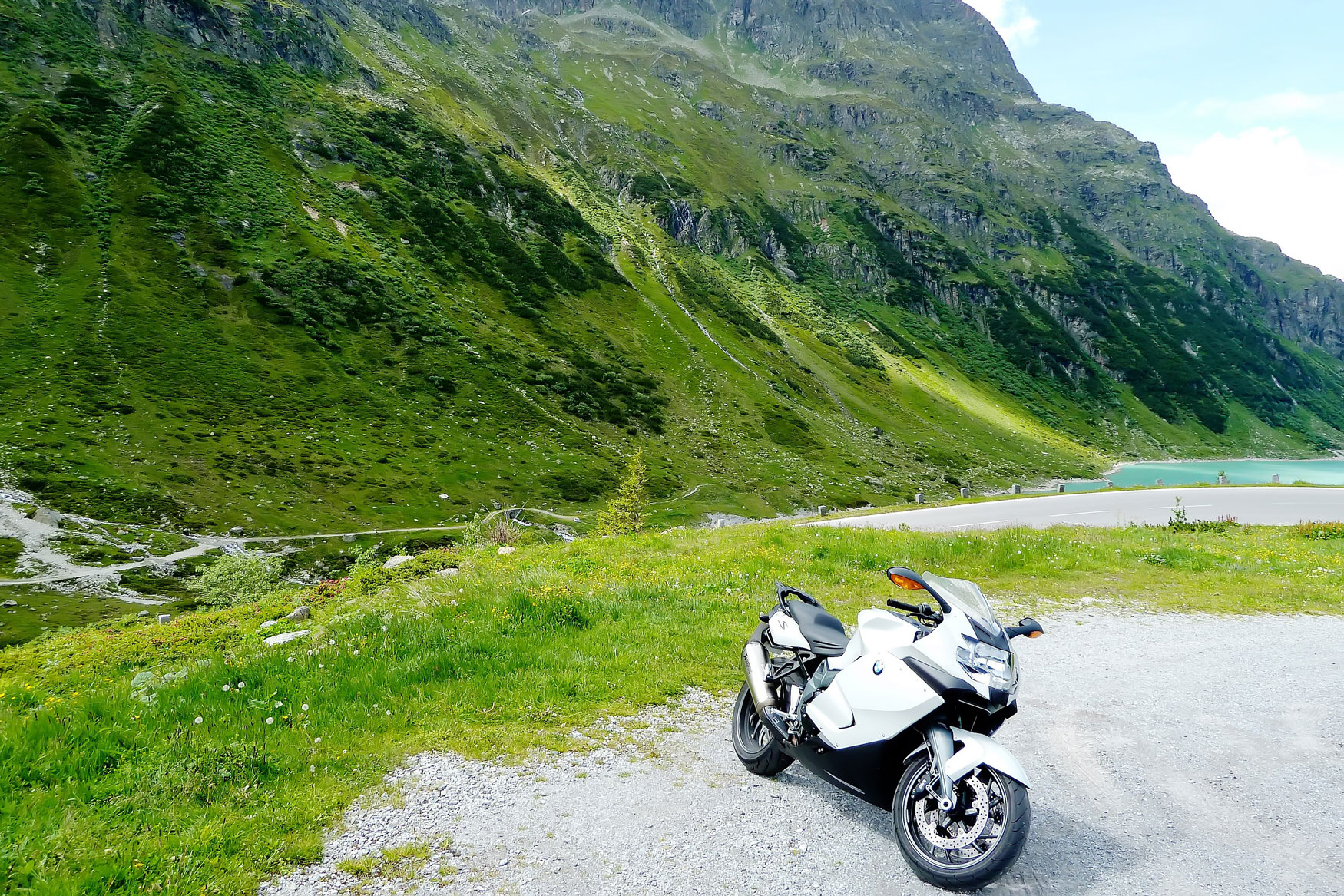 Über die 188 kurven wir durchs enge Tal bis zum Fuß der Silvretta Hochalpenstraße. 20 km und 34 Kehren liegen nun vor uns. Als erstes erreichen wir den Scheitelpunkt des Passes, die Bielerhöhe. Ein Stop zum Staunen und Innehalten ist hier einfach Pflicht. Das umliegende Bergpanorama ist einfach eine Wucht.