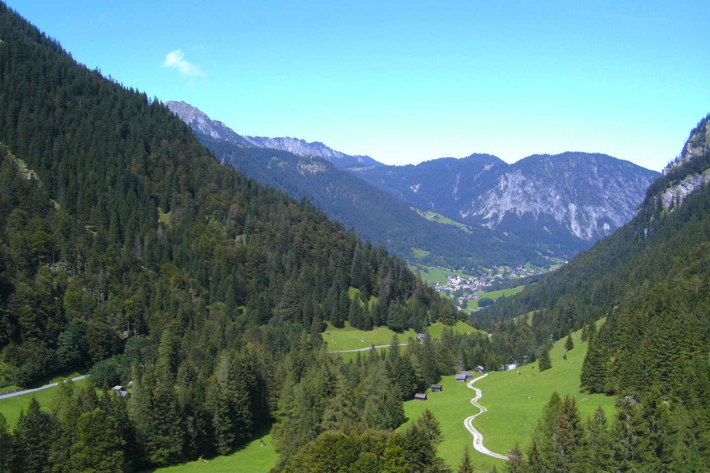 Es geht bergab ins Paznauntal durch kleine Dörfer bis zur Trisannabrücke. Zweimal müssen wir unseren Kurs nach links lenken und erreichen über die Arlberg-Ersatzstraße Strengen und Pardöll. Für den Rückweg nach Bludenz nehmen wir natürlich nicht den Autobahntunnel; die wäre ein Frevel für das Bikererlebnis. Wir klettern stattdessen hinauf nach St. Anton am Arlberg und kurven danach hinunter bis zu unserem Ausgangspunkt.