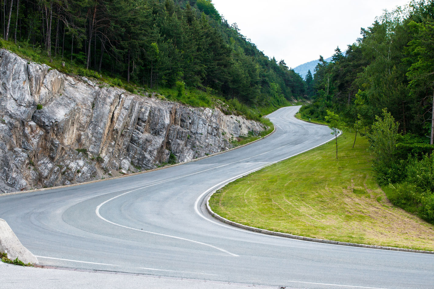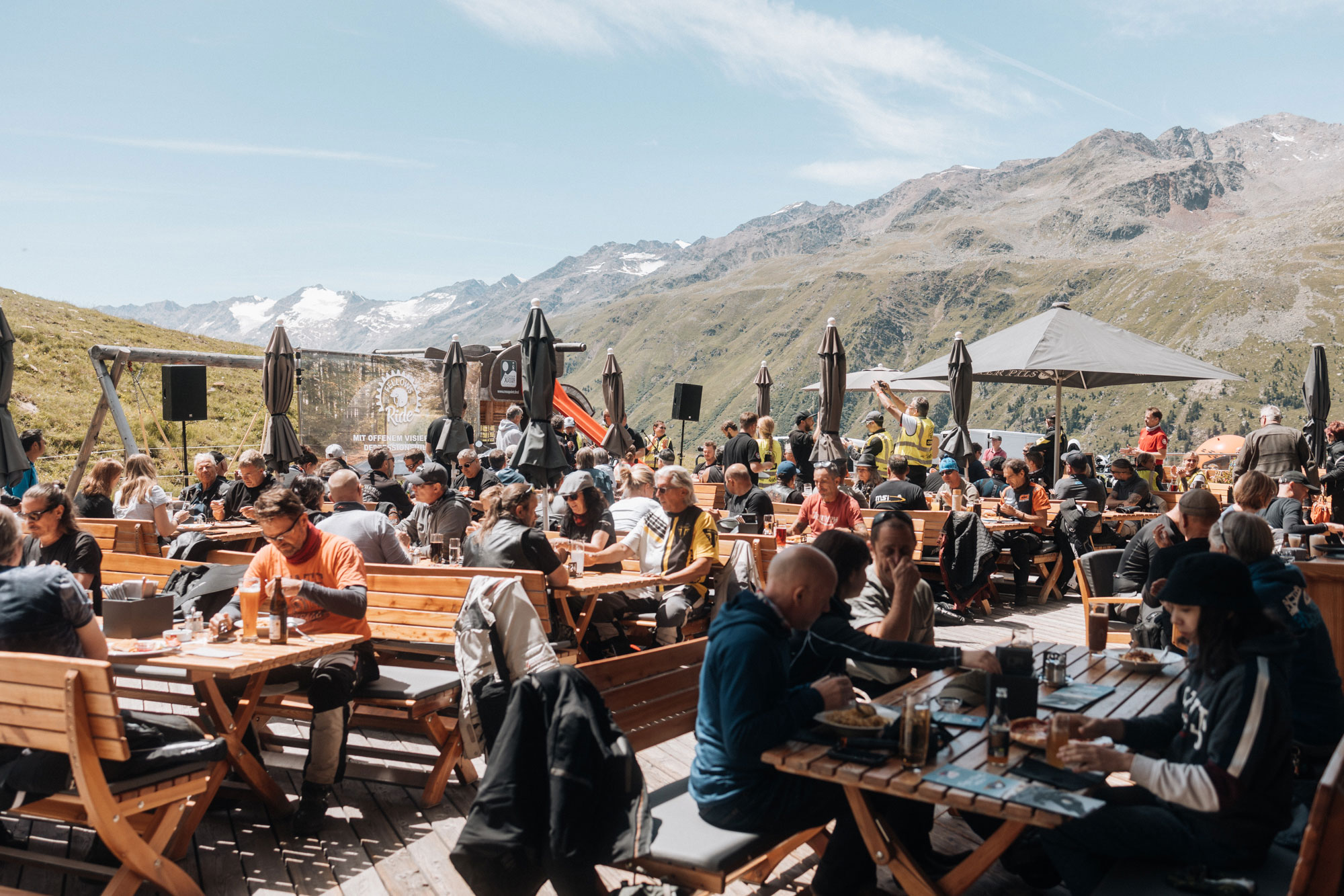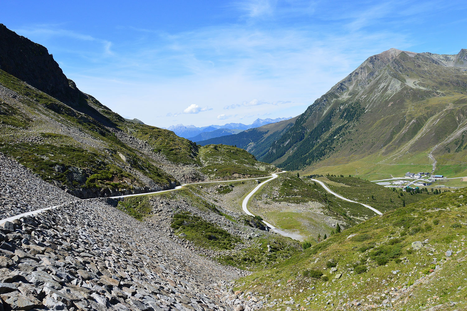 Die B186 führt uns durch ein naturnahes Gebiet. Wir erreichen schließlich Längenfeld und machen uns für einen weiteren Anstieg bereit. Die kurvenreiche Strecke schlängelt sich über Hochgurgel bis hinauf aufs Timmelsjoch. Hier passieren wir auch die Grenze nach Südtirol.