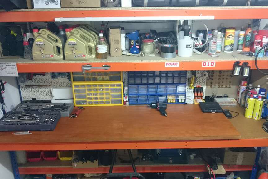 Wolf's Garage in Achau riecht nach Öl, Benzin und ehrlicher Arbeit. Das Werkzeug liegt ordentlich in den Schubladen. Nicht neu gekauft für die Show, sondern über Jahre gesammelt und tausendmal benutzt. Wolfgang Häubl schraubt hier mit dem Wissen aus über 30 Jahren und echter Hingabe. Dein Bike gibst du keinem anonymen Mechaniker, sondern einem Enthusiasten, der sein Handwerk lebt.
