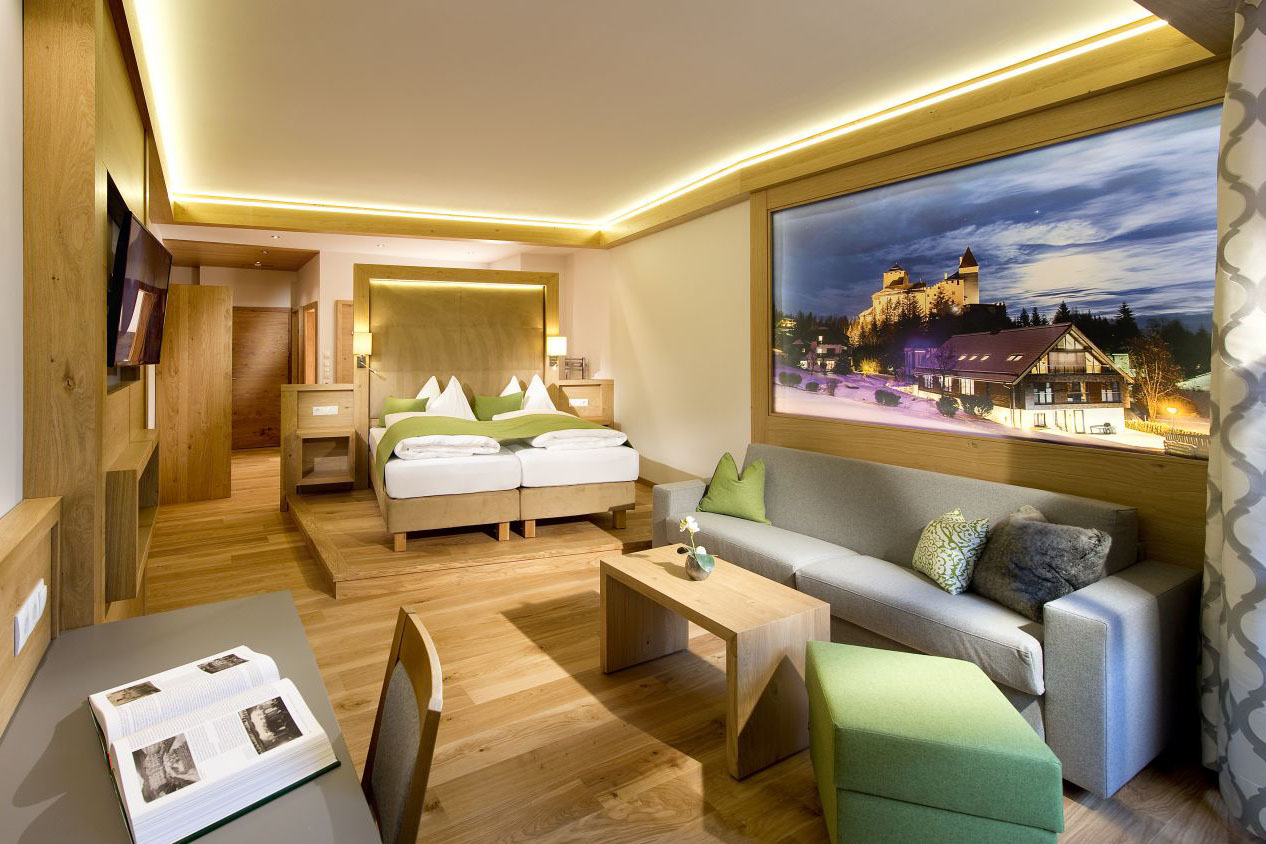 Die 32 Zimmer und Suiten sind großzügig geschnitten. Bis zu 40 Quadratmeter bieten Platz zum Durchatmen. Massivholzmöbel und Parkettboden schaffen eine warme Atmosphäre. Besonders die Zirbenzimmer duften herrlich und sorgen für erholsamen Schlaf. Modernes Bad, Flachbild-TV und schnelles WLAN gehören selbstverständlich dazu. Vom Balkon aus schaust du direkt auf die Lungauer Bergwelt.