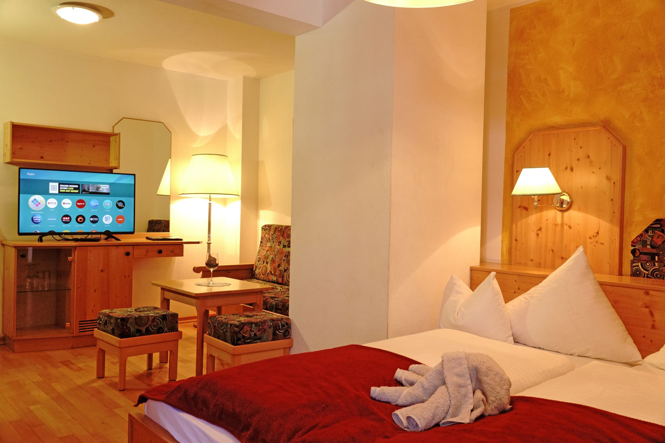 Jedes Zimmer hat einen Balkon mit herrlichem Blick auf die umliegenden Berge. Sie sind geräumig und mit traditionellen Holzmöbeln eingerichtet. Nach einer langen Motorradtour durch die Kärntner Berge kommst du in einem sauberen, gemütlichen Zimmer zur Ruhe. Dein Motorrad parkt kostenlos direkt am Hotel, mit ausreichend Platz für Anhänger und sogar für Gruppen.