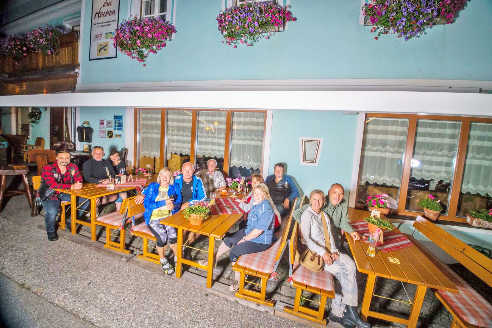 Die drei Hacken stehen für Holz, Fleisch und Landwirtschaft und sind Symbol für die lange Tradition. Die Zimmer sind picobello sauber und gemütlich. Dein Motorrad steht kostenlos in der Garage und in der Schrauber-Ecke mit Grundwerkzeug kannst du kleine Reparaturen selbst erledigen. Beim Garagenbier zur Ankunft lernst du schnell die anderen Biker kennen.